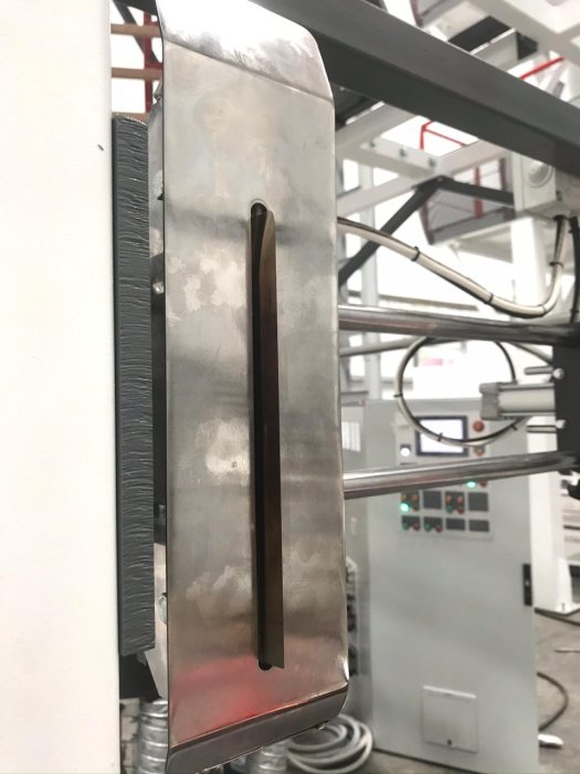 The hot knife is used to cut a wide sleeve into two or more narrow sleeves and simultaneously weld the resulting side seams to maximize extruder efficiency.